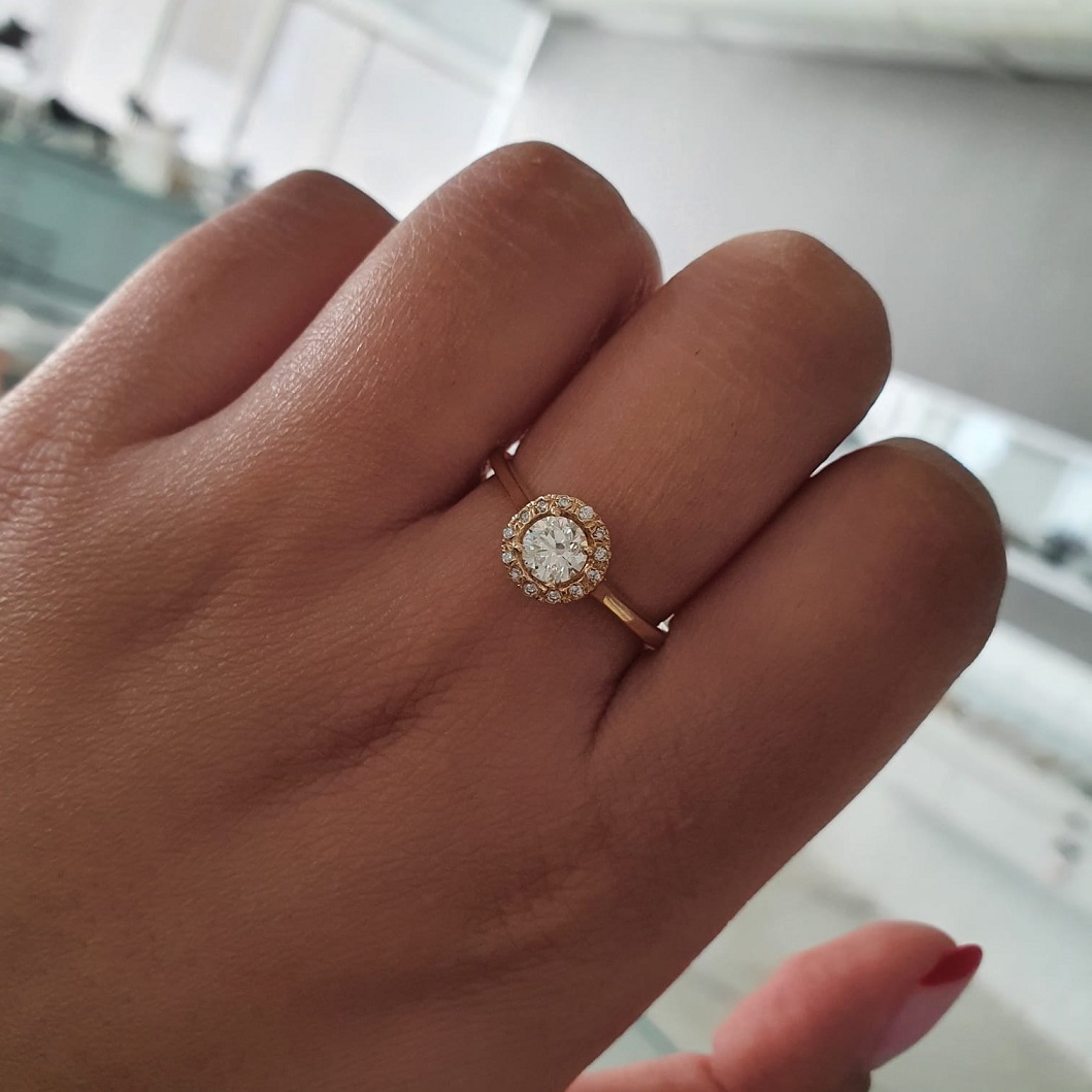 | טבעת "האלו" זהב K14 משובצת אבן יהלומים 0.57 קראט |