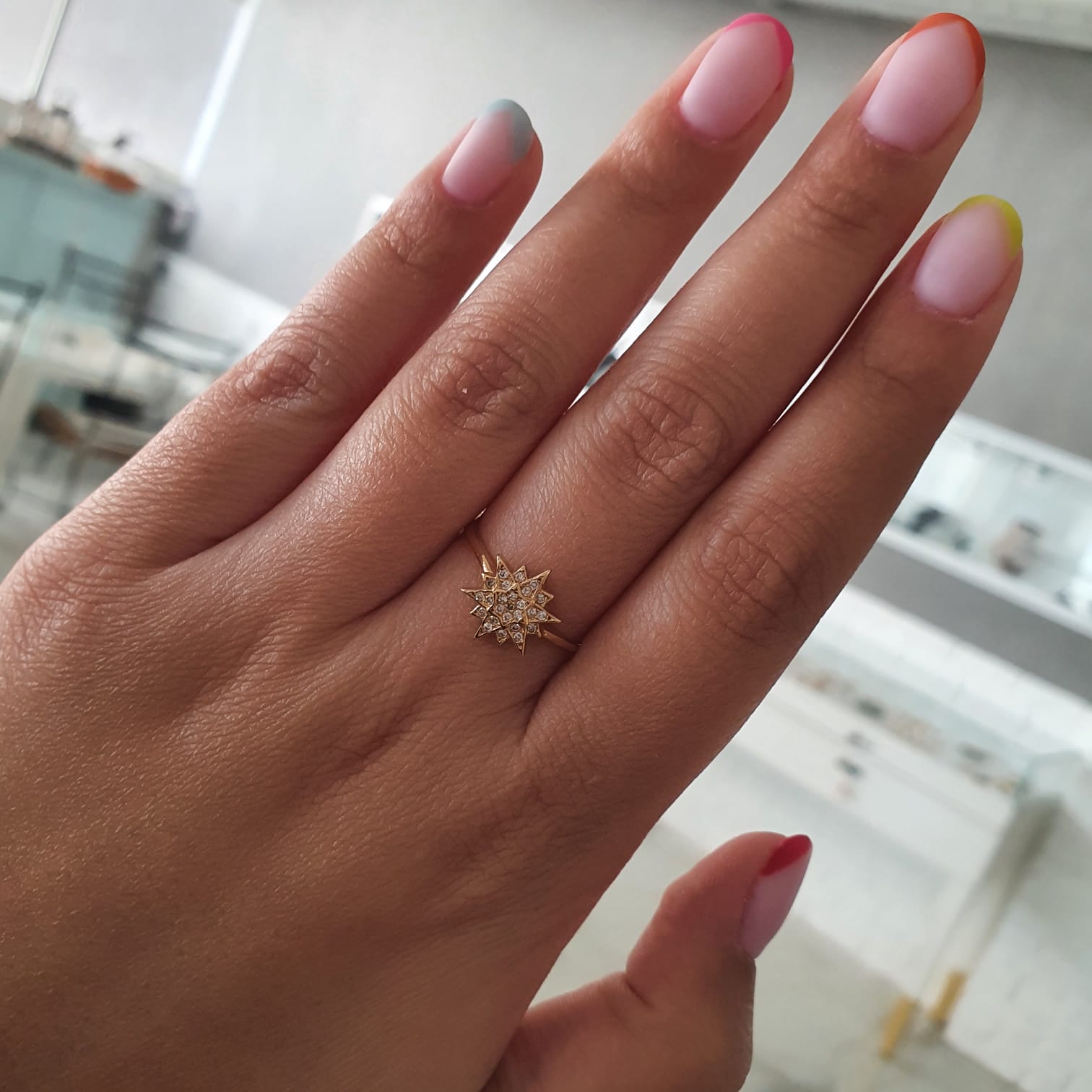 טבעת יהלומים בסגנון כוכב קטן בזהב 14 קראט