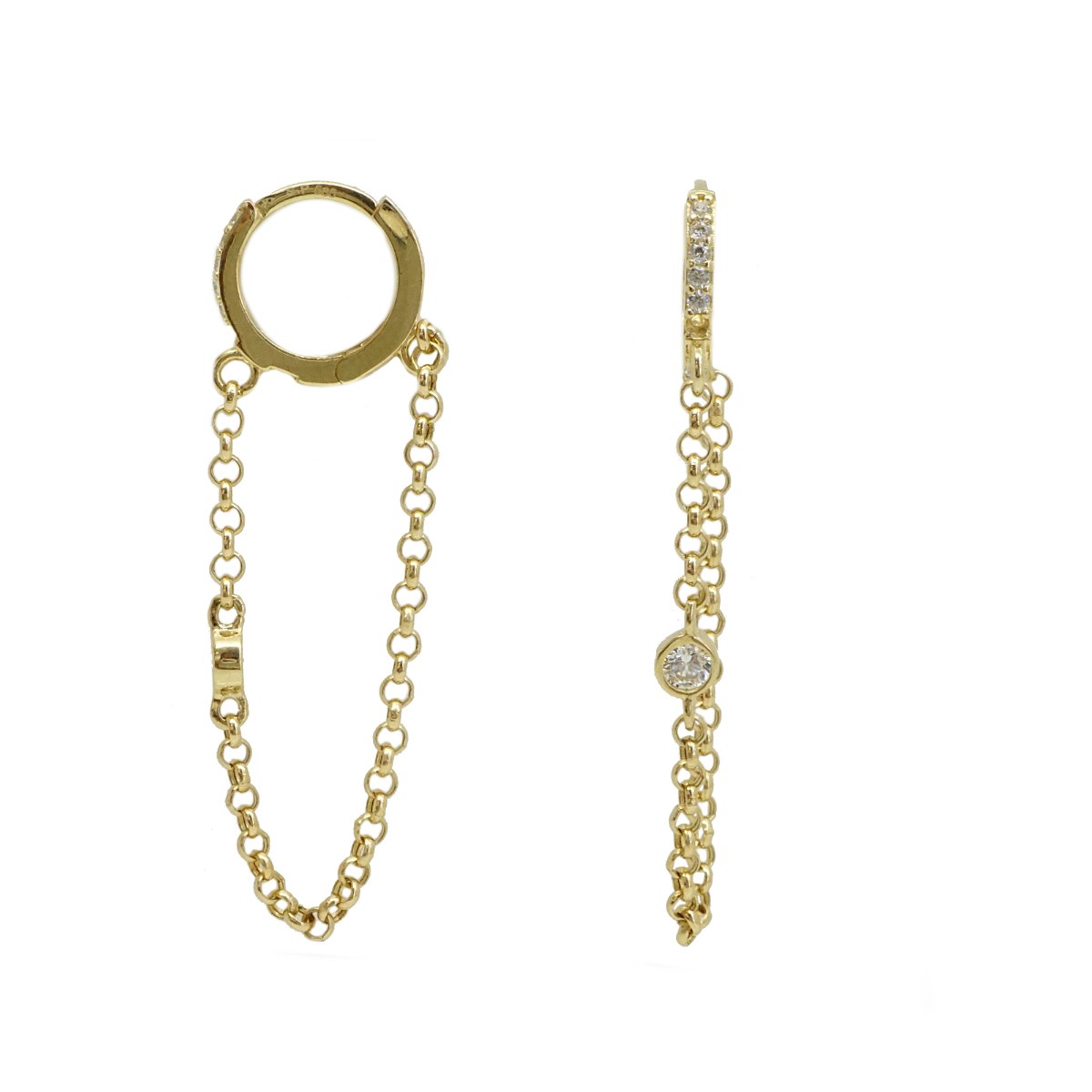 עגילי זהב חישוק זרקונים בשילוב שרשרת זהב