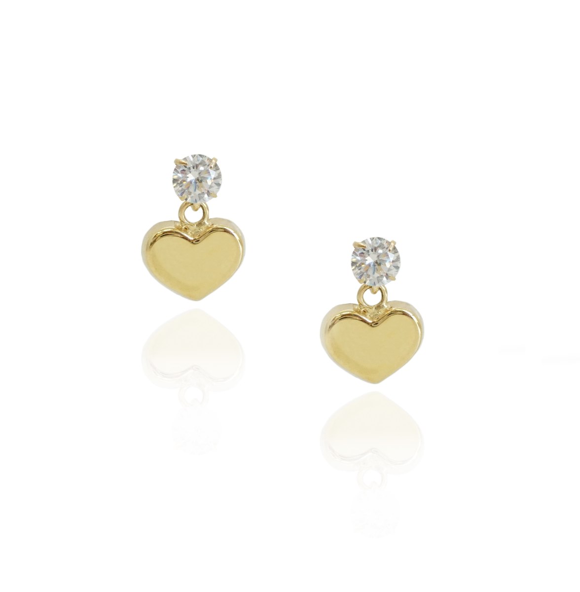עגילי זהב עם לב תלויים וזרקונים