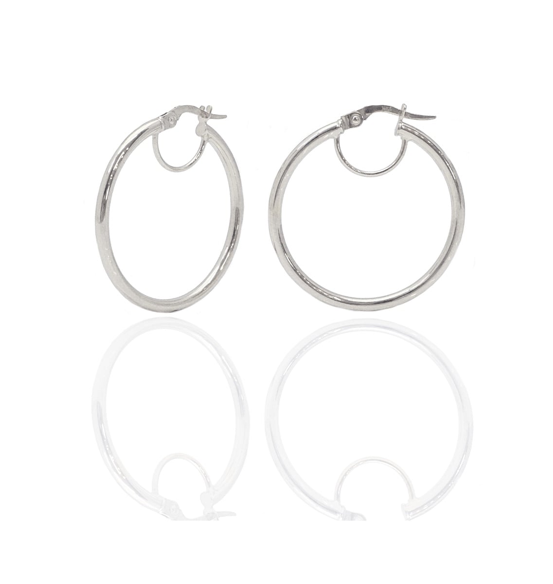 עגילי חישוק בינוניים מזהב לבן אמיתי 14 קראט