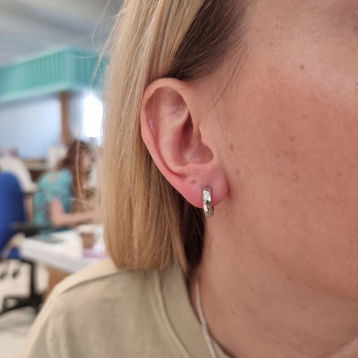 | תיאור עגילי חישוק קטנים מזהב 14K לבן. חישוקים עדינים ומהממים . |