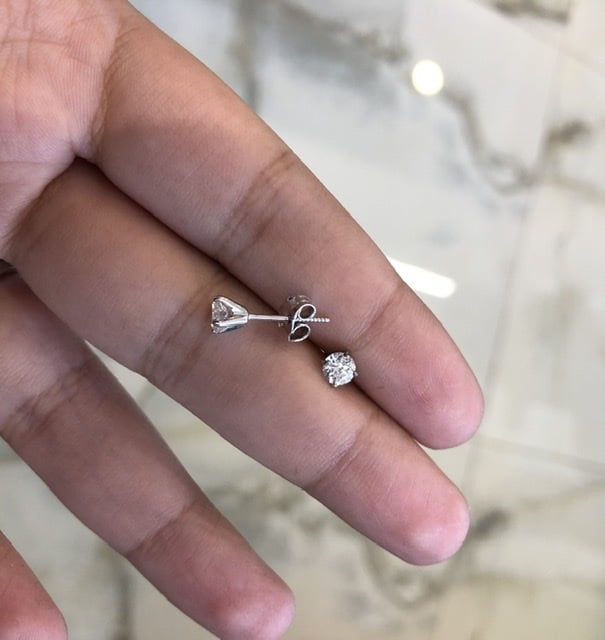 עגילי יהלומים צמודים 0.65 קראט בזהב 14 קאראט