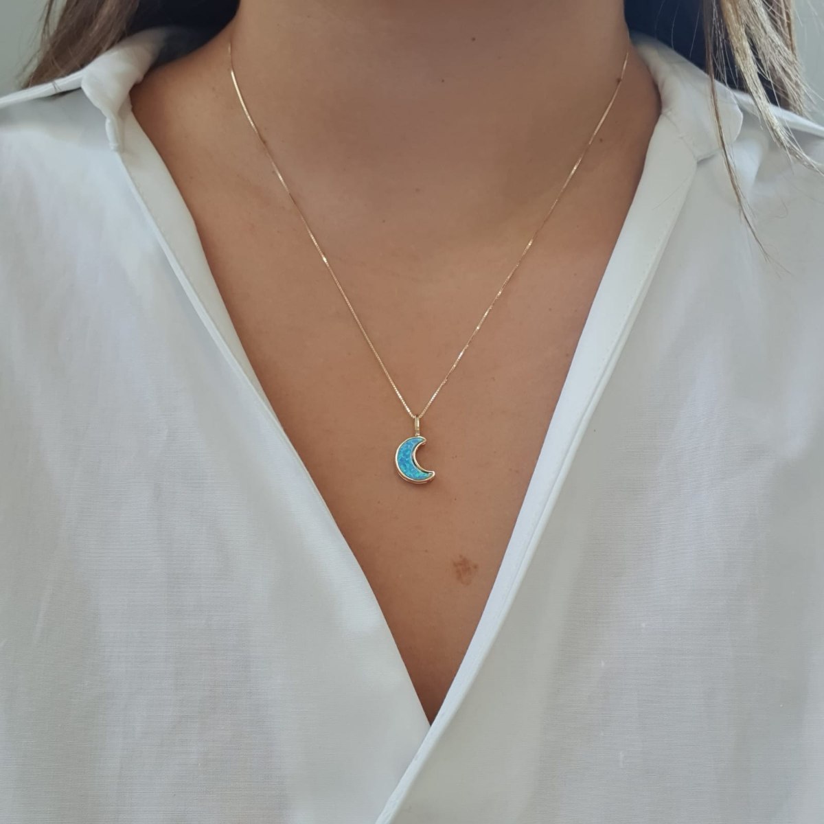 שרשרת ירח זהב מאבן אופל